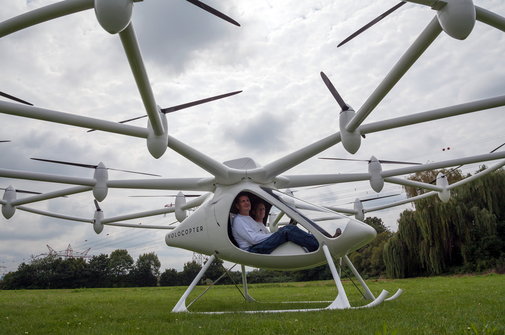 Volocopter firmasının ürünü E-Volo yolcusunu 20 dakika boyunca uçurabiliyor